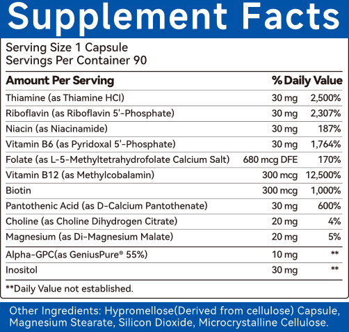 - B-complex vitamins for brain power and cognitive support formula.